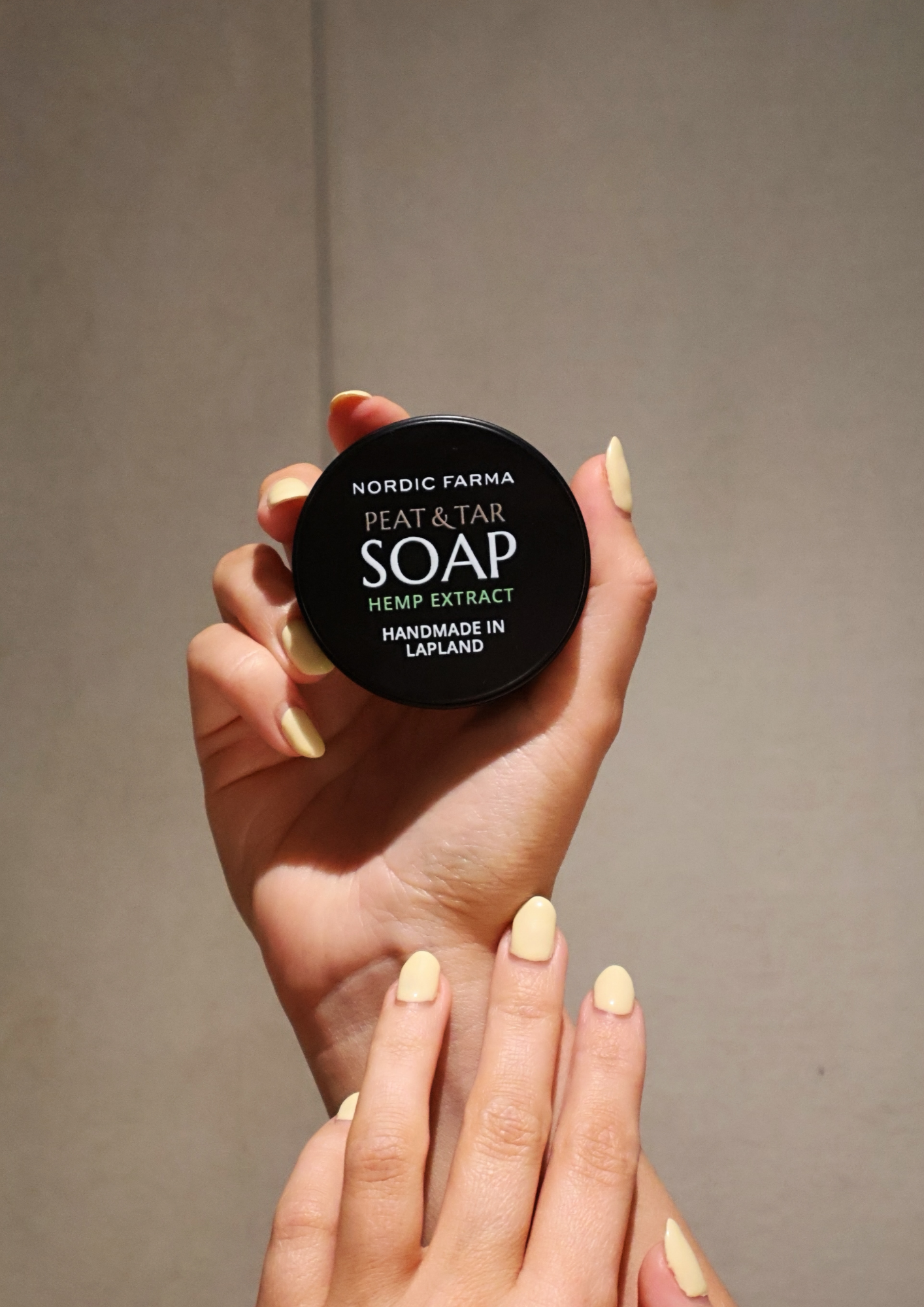 Turvetervasaippua on monikäyttöinen palasaippua, joka on suunniteltu koko vartalon pesuun. Tuotteessa yhdistyvät kotimainen turve ja perinteinen terva tehokkaaksi kokonaisuudeksi, joka syväpuhdistaa ja rauhoittaa ihoa. Lisäksi mukana on hampputiiviste joka sisältää Lapissa viljeltyä hamppua ja CBD:tä, se kosteuttaa, tasapainottaa ja rauhoittaa ihoa.